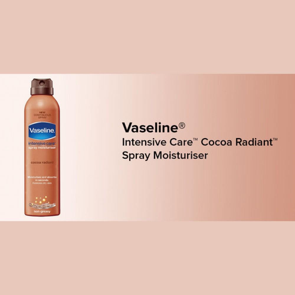 دللي بشرتك مع بخاخ فازلين المرطب "كاكاو راديانت" بتركيبته الخفيفة وسرعة الامتصاص، المصمم خصيصًا لتغذية البشرة الجافة ومنحها إشراقة طبيعية.