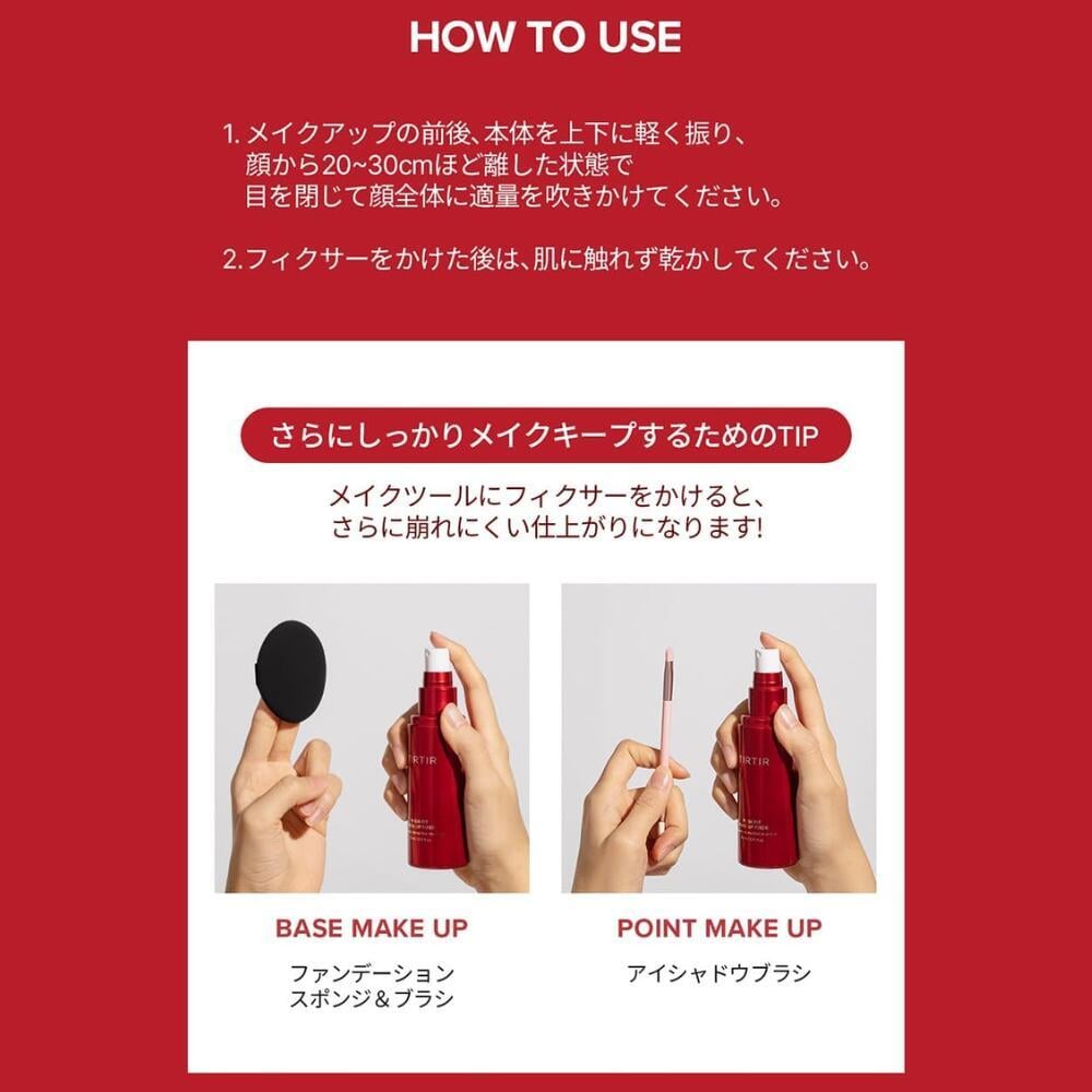 1. قبل وبعد وضع المكياج، قم بهز المنتج بلطف لأعلى ولأسفل، ثم أمسكه على بعد حوالي 20-30 سم من وجهك، وأغمض عينيك، ورش كمية مناسبة على وجهك بالكامل.