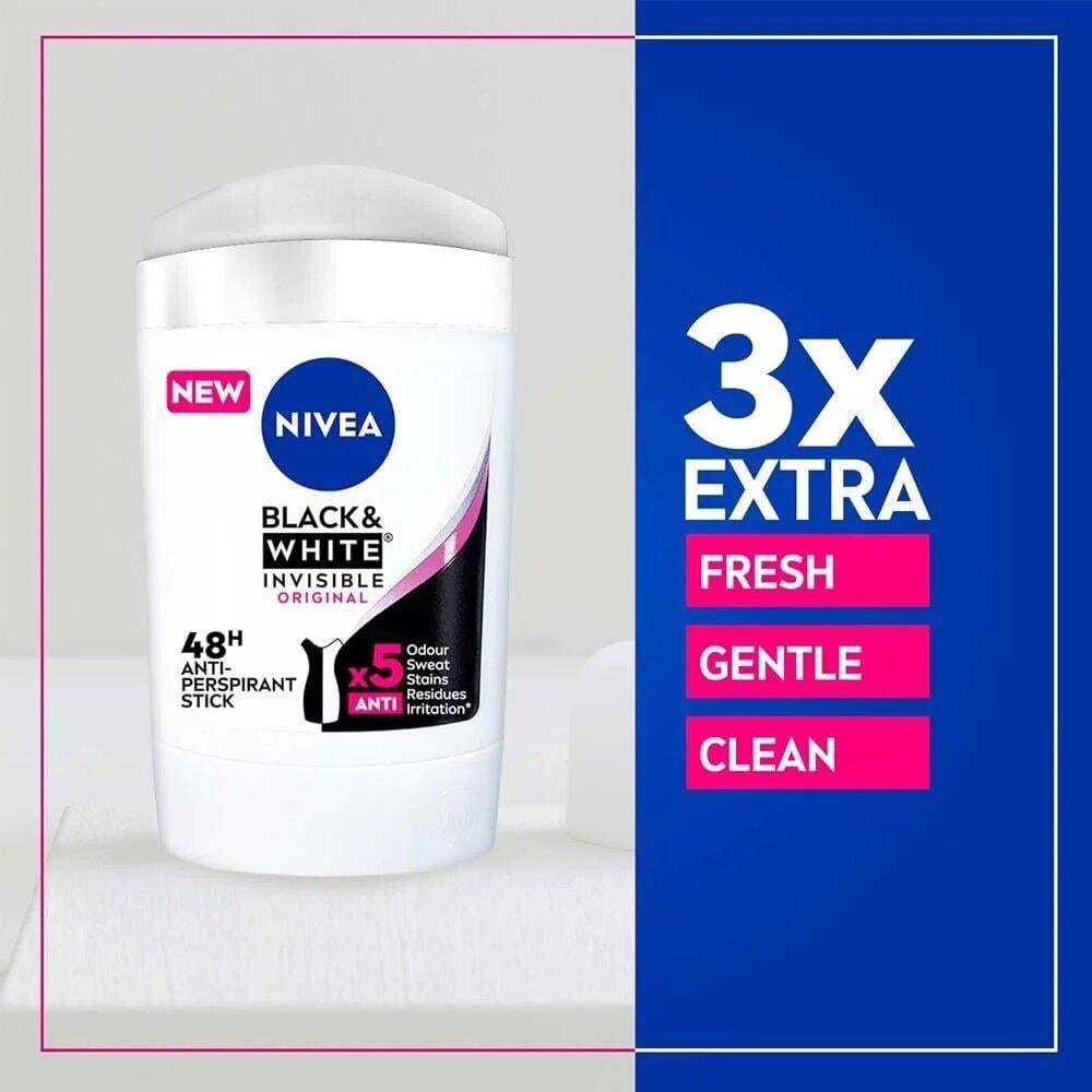 مزيل عرق ستيك بلاك آند وايت إنفيزيبل للنساء من نيفيا